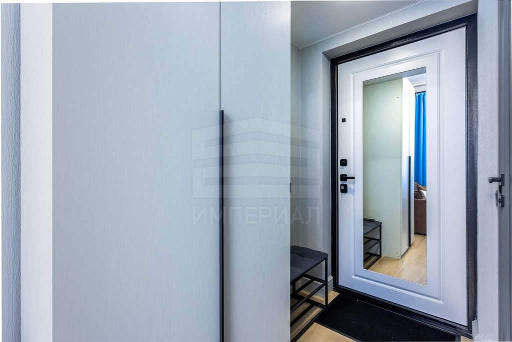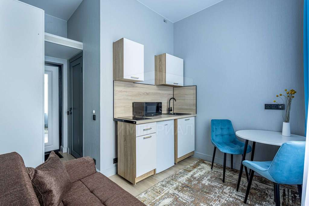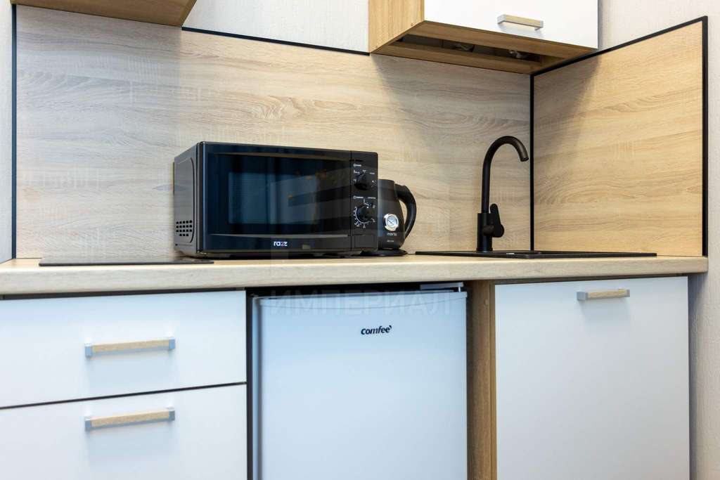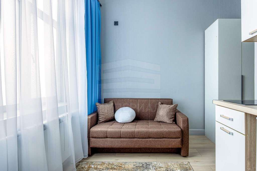 На полу постелен ламинат, на стенах поклеены светлые обои, полностью мебелированный.