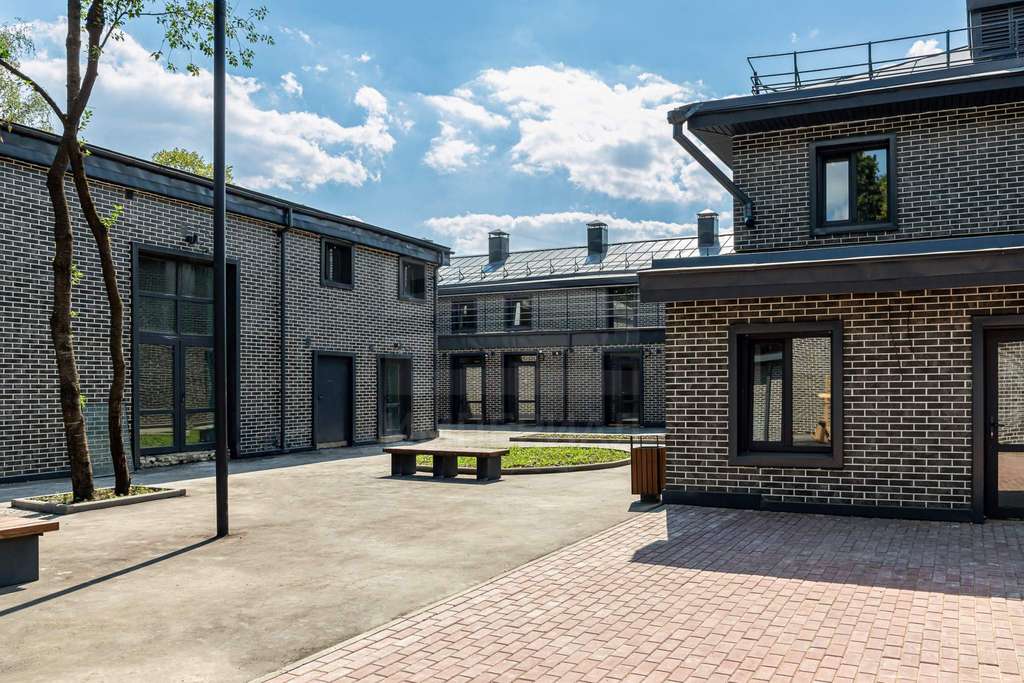 Отделка фасадов выполнена панелями с имитацией клинкерного кирпича. Дополнительно на территории организованы зоны отдыха на свежем воздухе, также дополнительно имеется возможность для организации летних веранд и кафе.