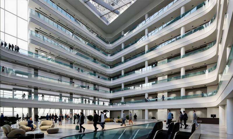 Авторская архитектура здания и просторный атриум создадут комфортную атмосферу для сотрудников и клиентов.