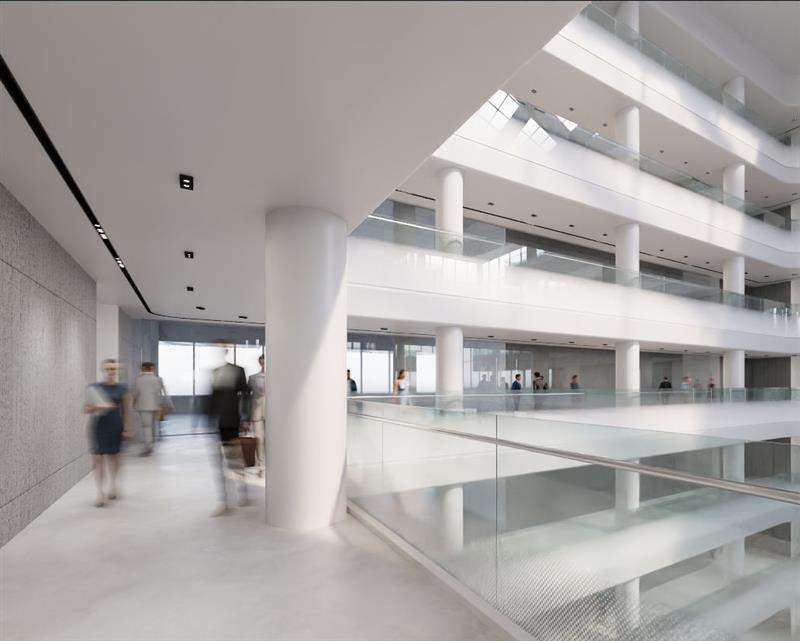 Авторская архитектура здания и просторный атриум создадут комфортную атмосферу для сотрудников и клиентов.
