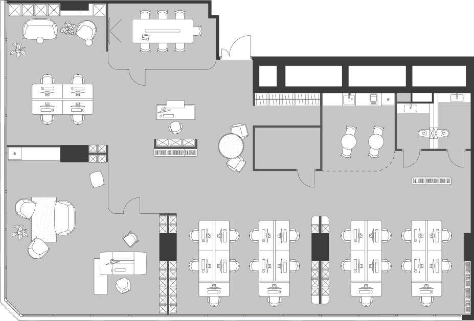 - Пространства без колонн в углах, идеально подходят для руководителей и современных команд.