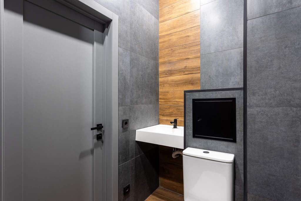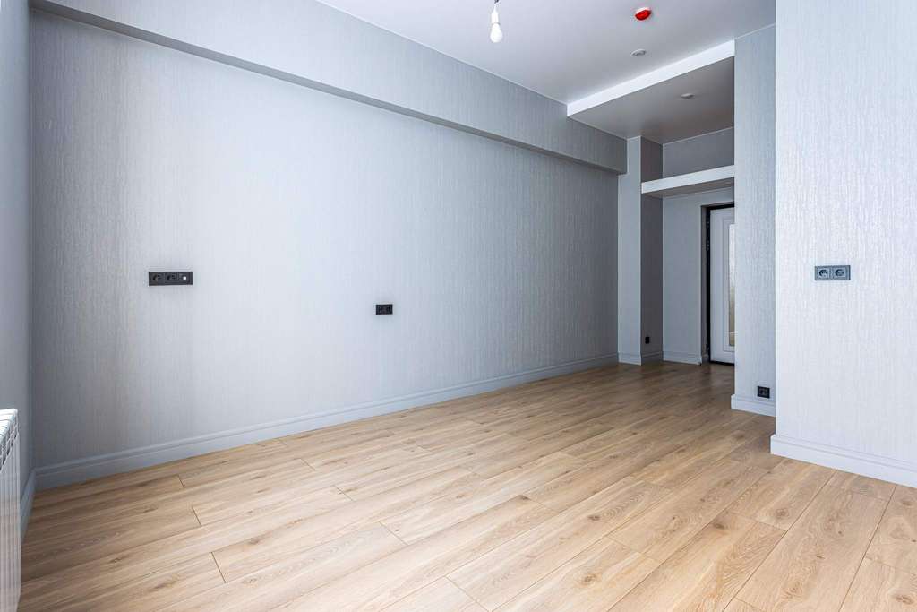 На полу постелен ламинат, на стенах поклеены светлые обои.