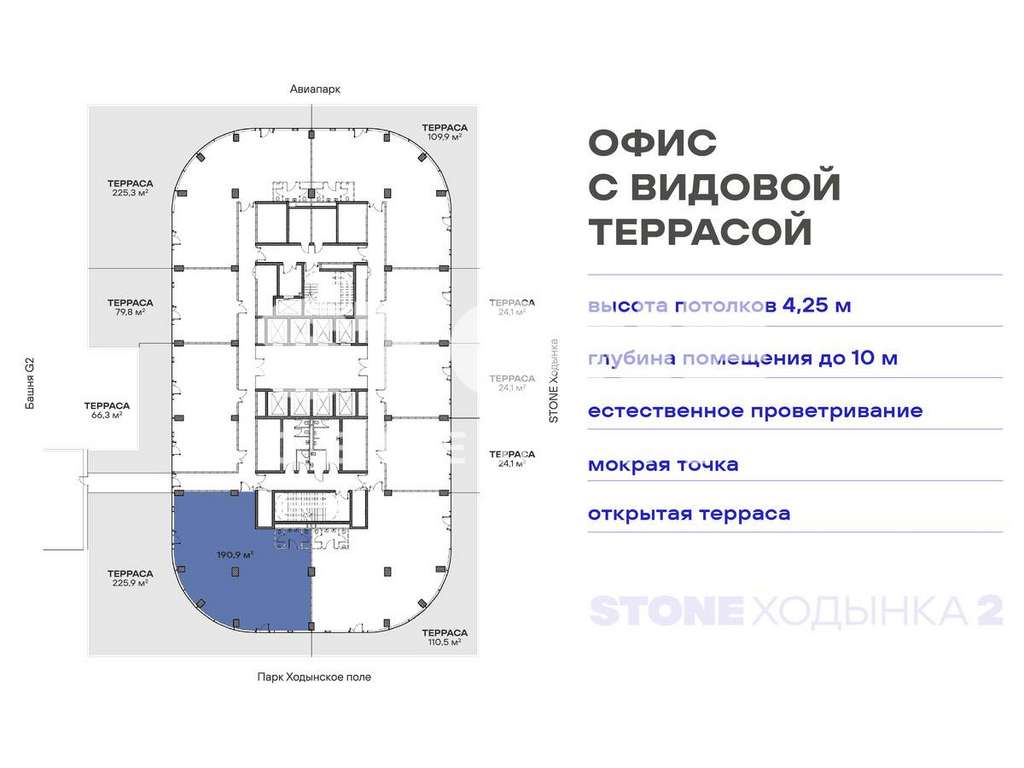 Уникальный формат коммерческой недвижимости - офисы с террасами от 80 кв. м в составе премиального офисного квартала STONE Ходынка 2 с прямым выходом в парк Ходынское поле.