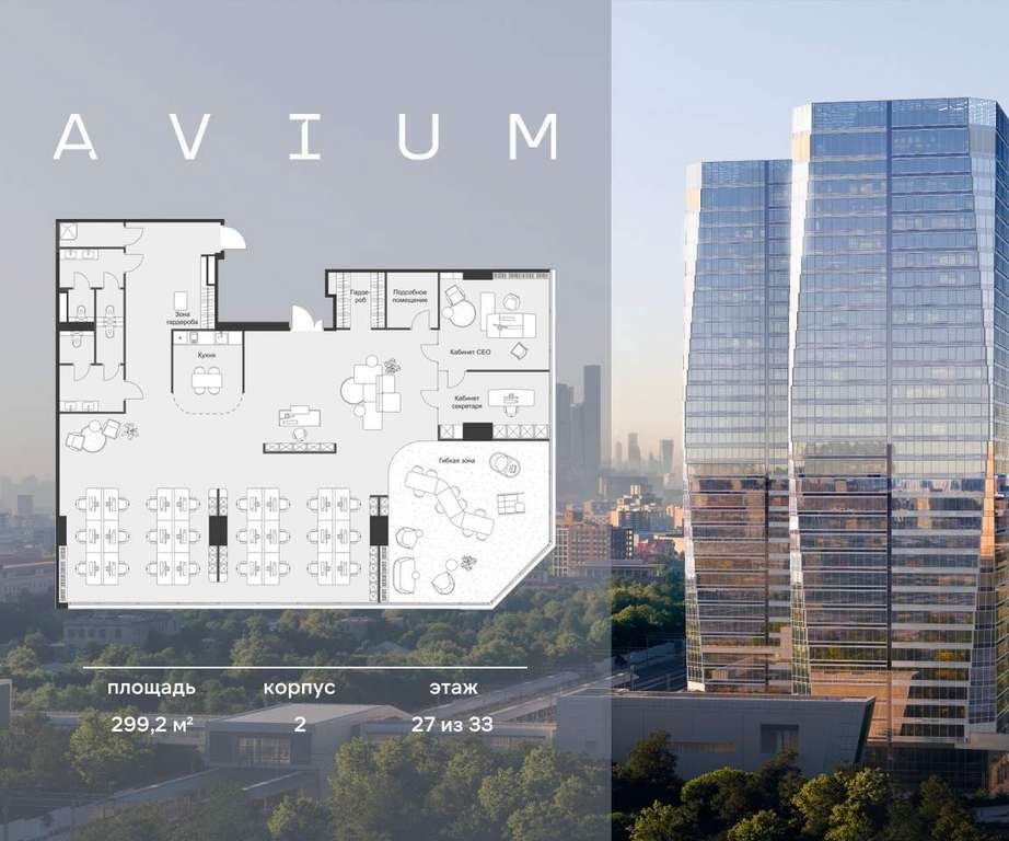 Продажа премиальных офисов в бизнес центре AVIUM. Две 34-этажные башни, объединённые галереей и дочерним корпусом.