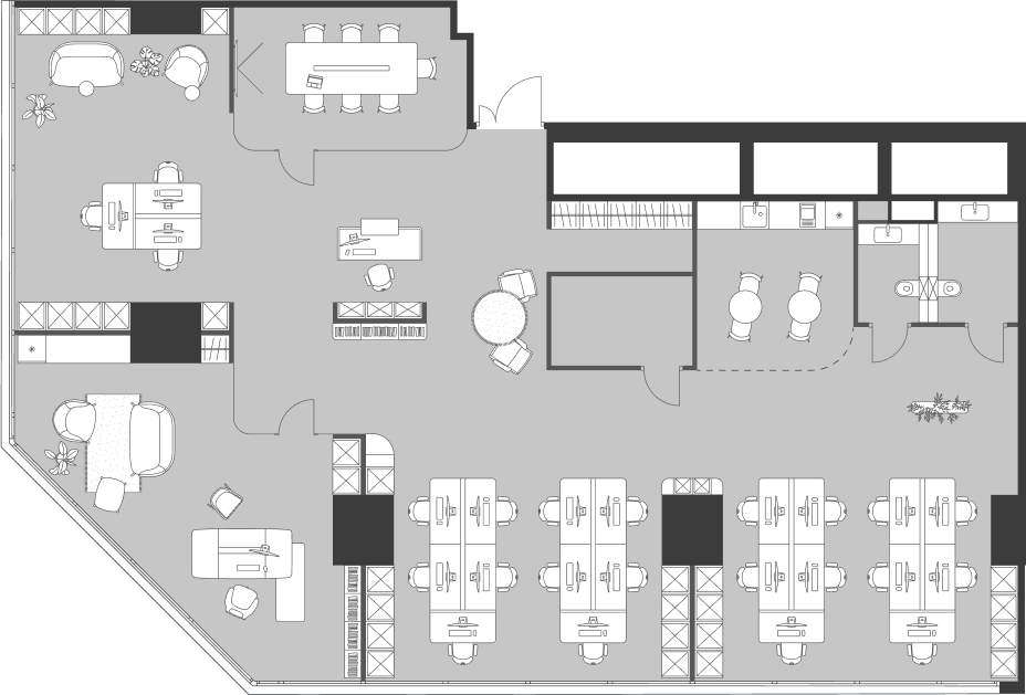 - Пространства без колонн в углах, идеально подходят для руководителей и современных команд.