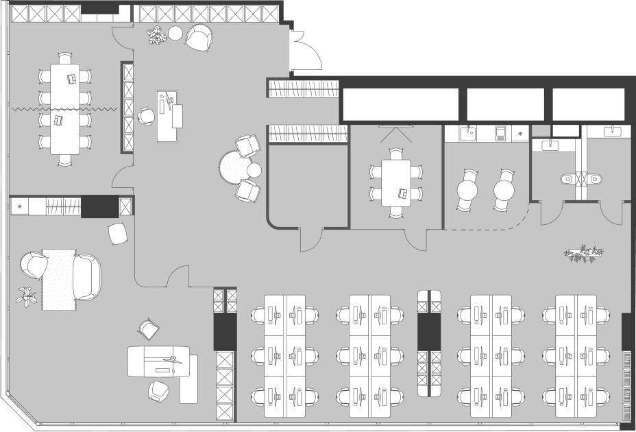- Пространства без колонн в углах, идеально подходят для руководителей и современных команд.