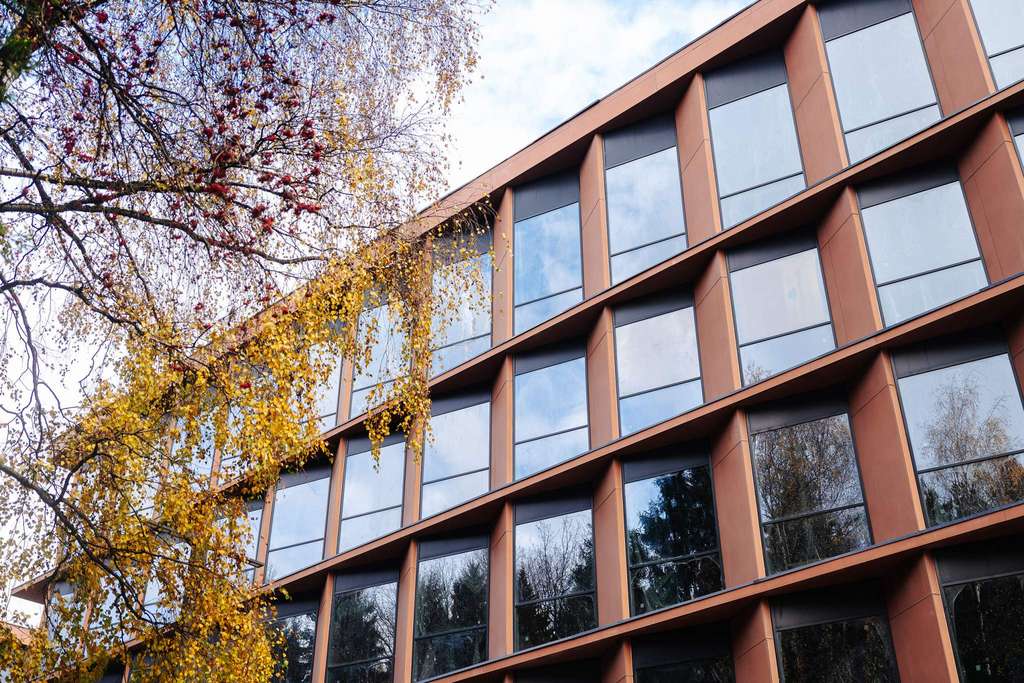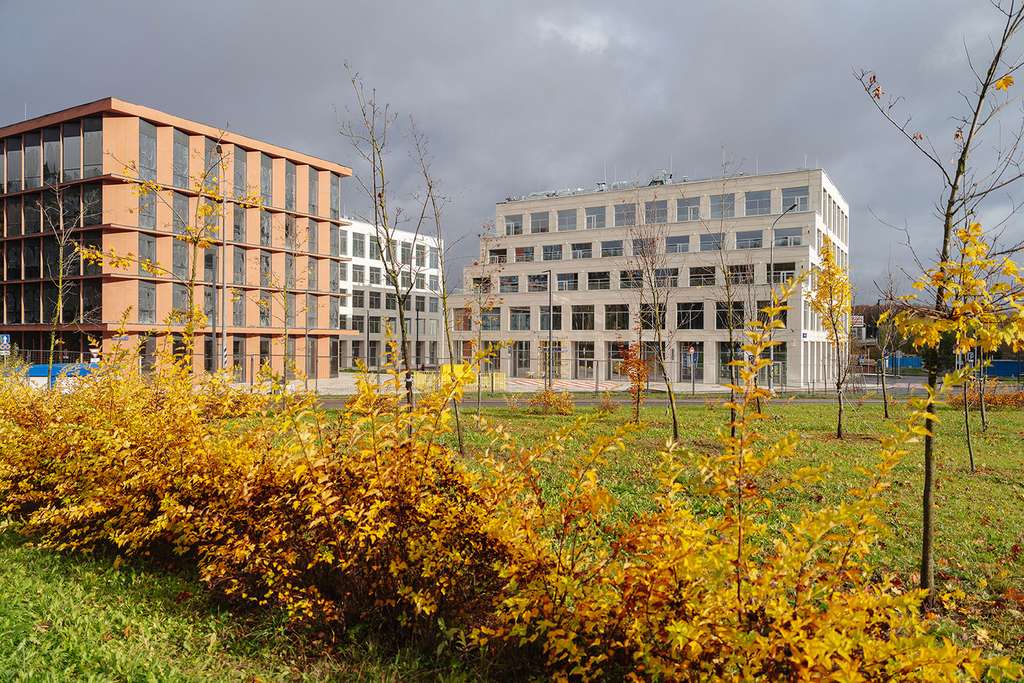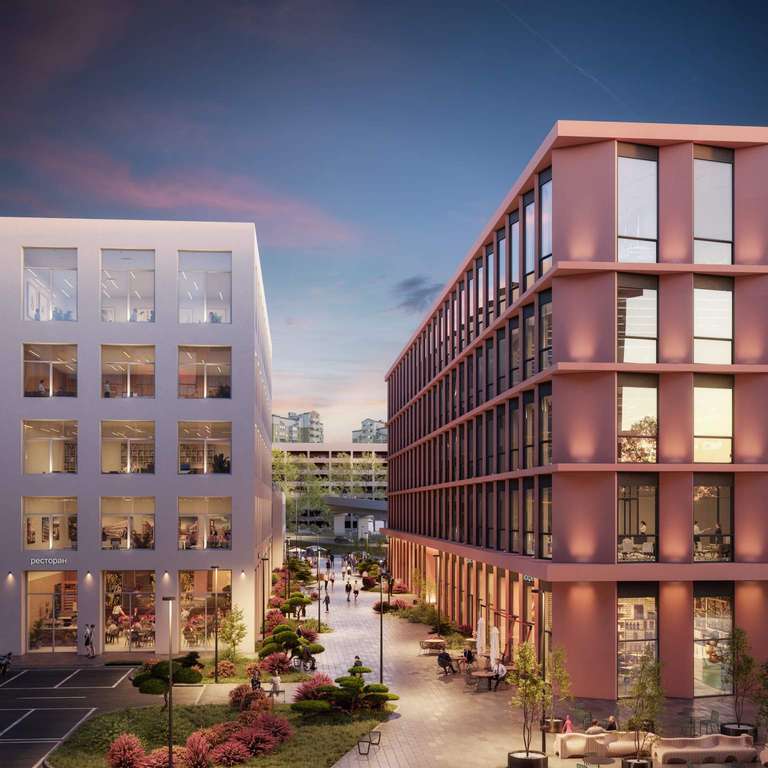 - На первых этажах офисных зданий просторные лобби с комфортной зоной ожидания, супермаркет, торговые помещения, отделения банков и сервисных служб, фитнес-студия