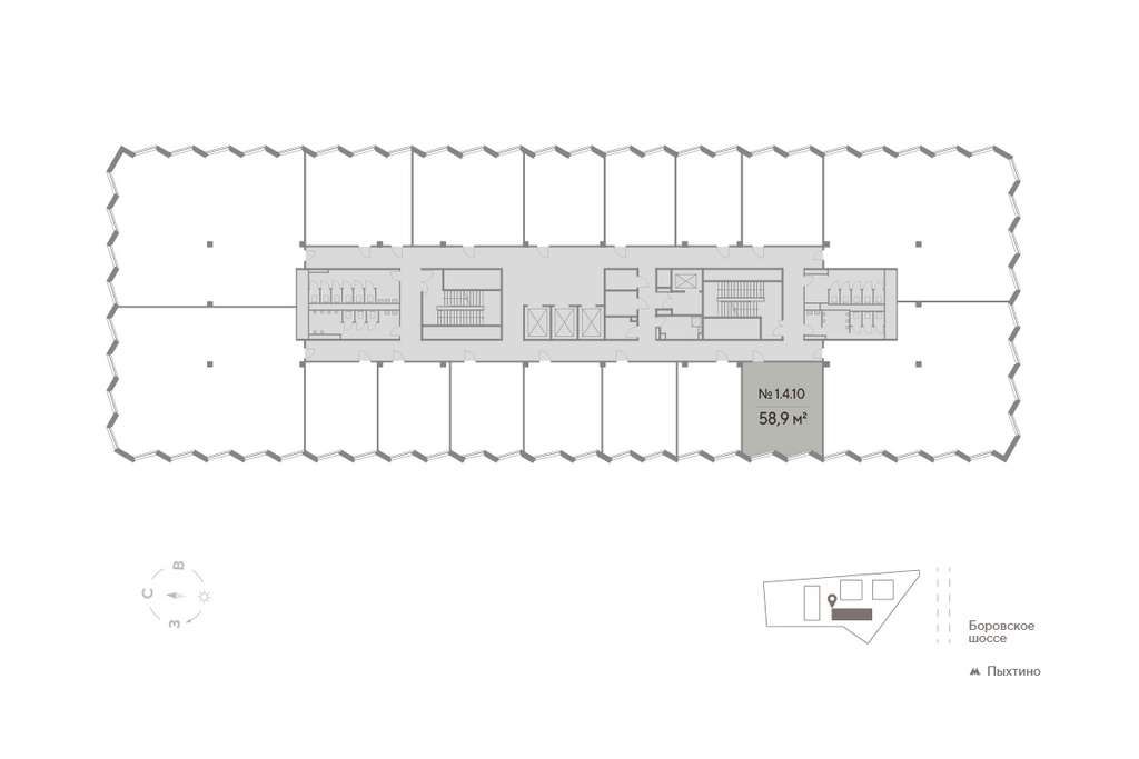 - Офисное помещение 58,9 м2 на 4 этаже (корпус 1)