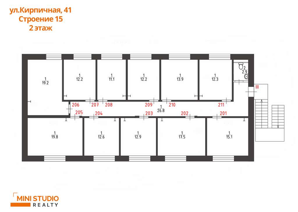Помещения располагаются на 2-м этаже корпуса 15 в бизнес-квартале Кирпичная 41. Подойдут под офис, хостел, видео-студию. Есть возможность увеличения площади за счет объединения с другими помещениями.