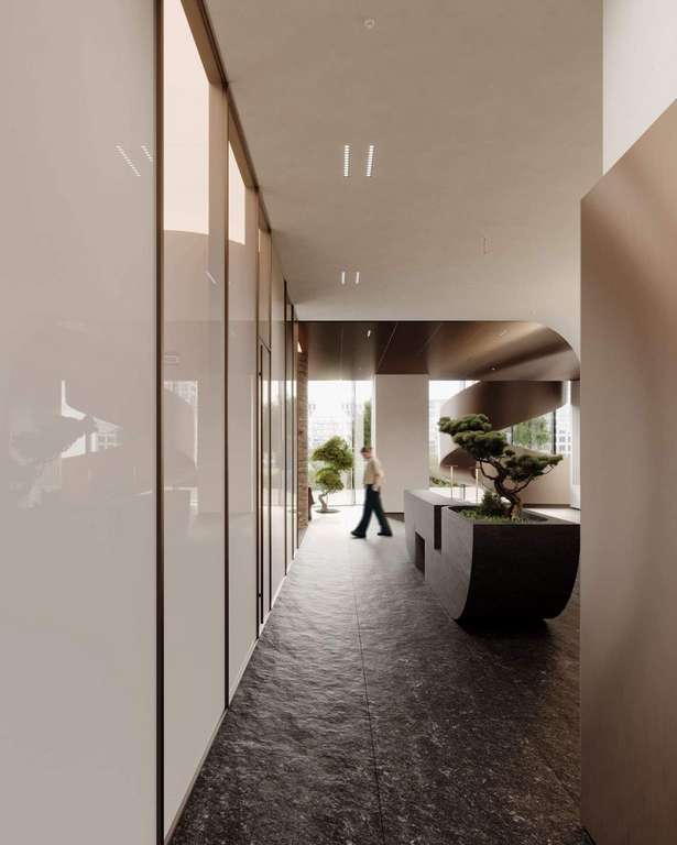 - В каждой башне - эффектные лобби, современные переговорные и лаундж-зоны. Скоростные лифты с интеллектуальной системой, ожидание до 45 секунд.