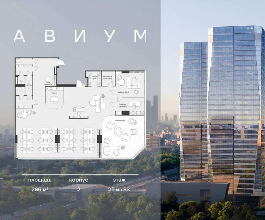 Продажа премиальных офисов в бизнес центре Авиум. Две 34-этажные башни, объединённые галереей и дочерним корпусом.