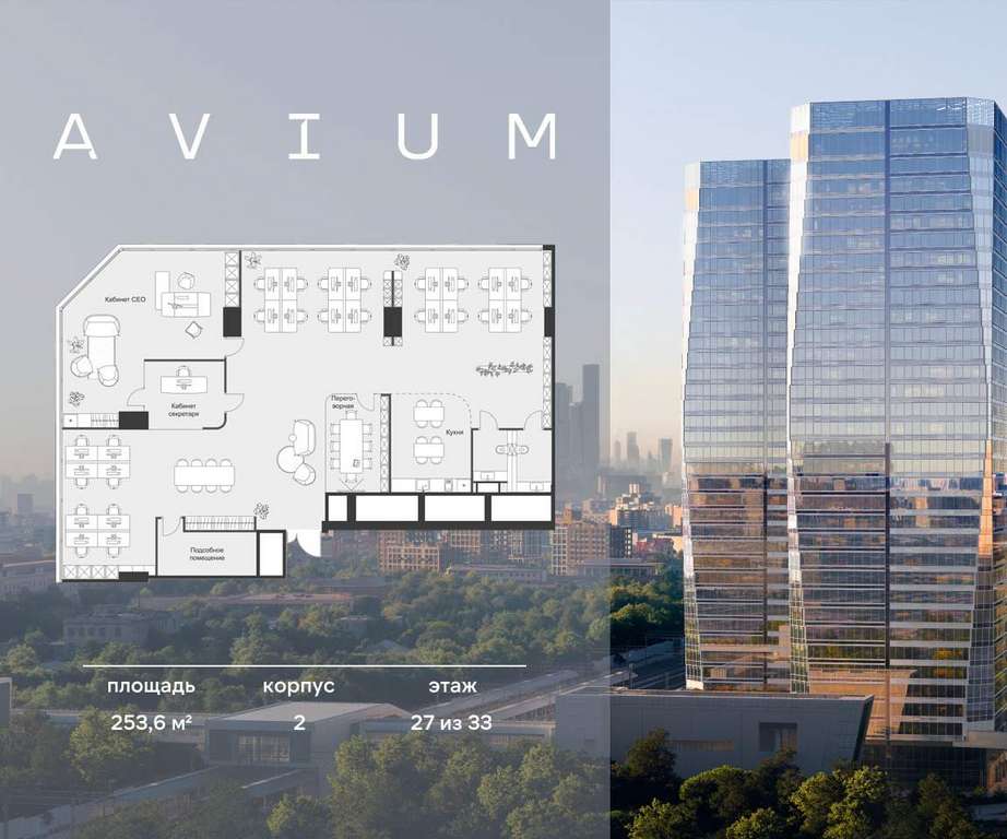 Продажа премиальных офисов в бизнес центре AVIUM. Две 34-этажные башни, объединённые галереей и дочерним корпусом.