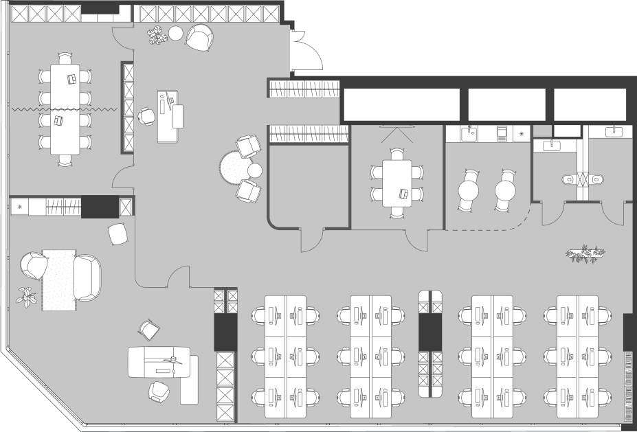 - Пространства без колонн в углах, идеально подходят для руководителей и современных команд.