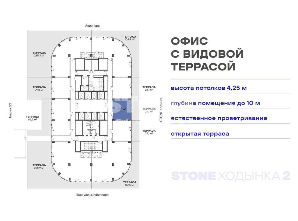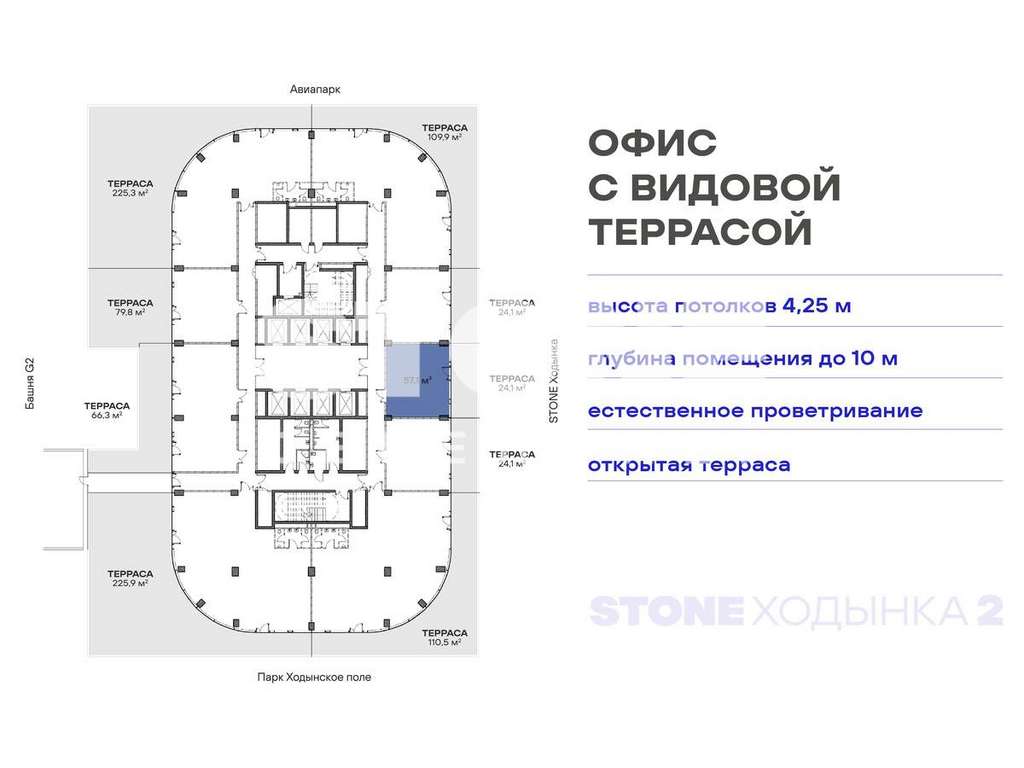Уникальный формат коммерческой недвижимости - офисы с террасами от 80 кв. м в составе премиального офисного квартала STONE Ходынка 2 с прямым выходом в парк Ходынское поле.