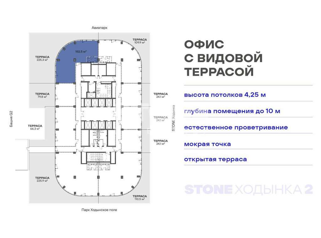 Уникальный формат коммерческой недвижимости - офисы с террасами от 80 кв. м в составе премиального офисного квартала STONE Ходынка 2 с прямым выходом в парк Ходынское поле.