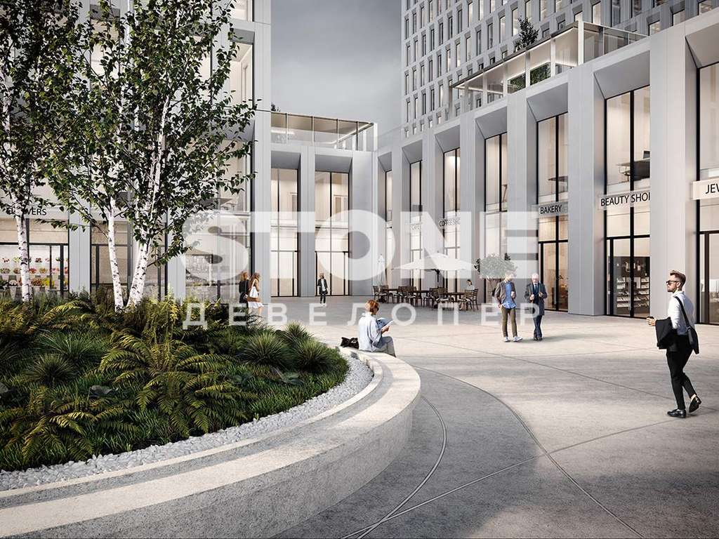В двухуровневом стилобате разместится вся необходимая инфраструктура: торговые помещения, кафе, рестораны, столовая для сотрудников, аптеки, банкоматы, фитнес-центр.