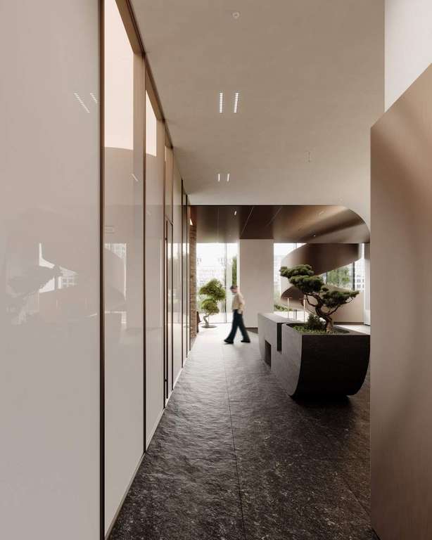 - Лобби с современными переговорными, лаунж-зонами, комнатами ожидания курьеров и местами хранения корреспонденции;