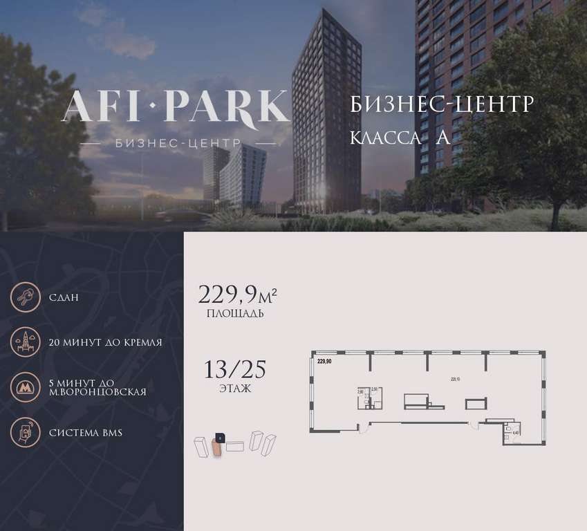 Продается просторное коммерческое помещение общей площадью 229,9 на 13 этаже в готовом бизнес-центре AFI Park. Строительство комплекса завершено.