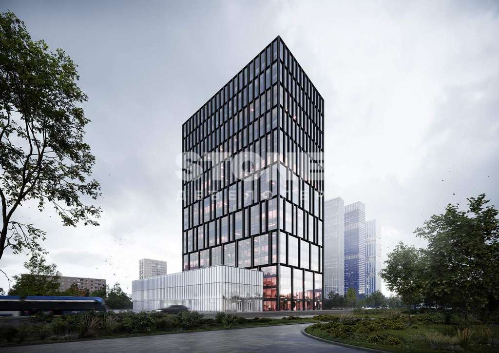 Архитектура от бюро IND. Проектом предусмотрена 23-этажная офисная башня с динамичным фасадом, а также торговая галерея с панорамным остеклением. Общая площадь бизнес-центра составит 49 тыс. кв. м.
