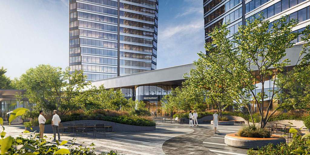 Продажа премиальных офисов в бизнес центре AVIUM. Две 34-этажные башни, объединённые галереей и дочерним корпусом.
