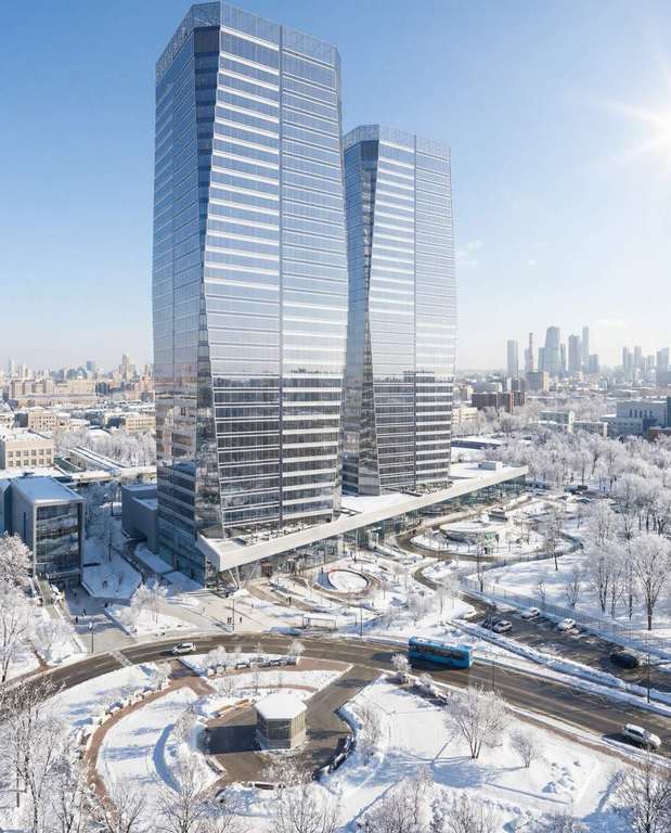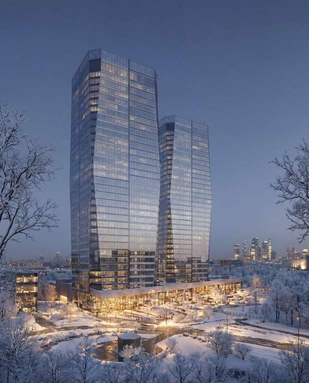 Продажа премиальных офисов в бизнес центре AVIUM. Две 34-этажные башни, объединённые галереей и дочерним корпусом.