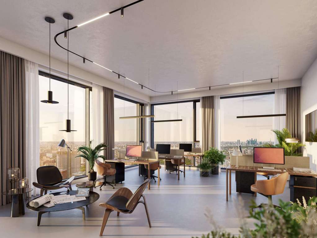 За счет неглубокой посадки офисов и панорамного остекления все помещения хорошо освещаются естественным образом. Из окон открывается панорамный вид на город и