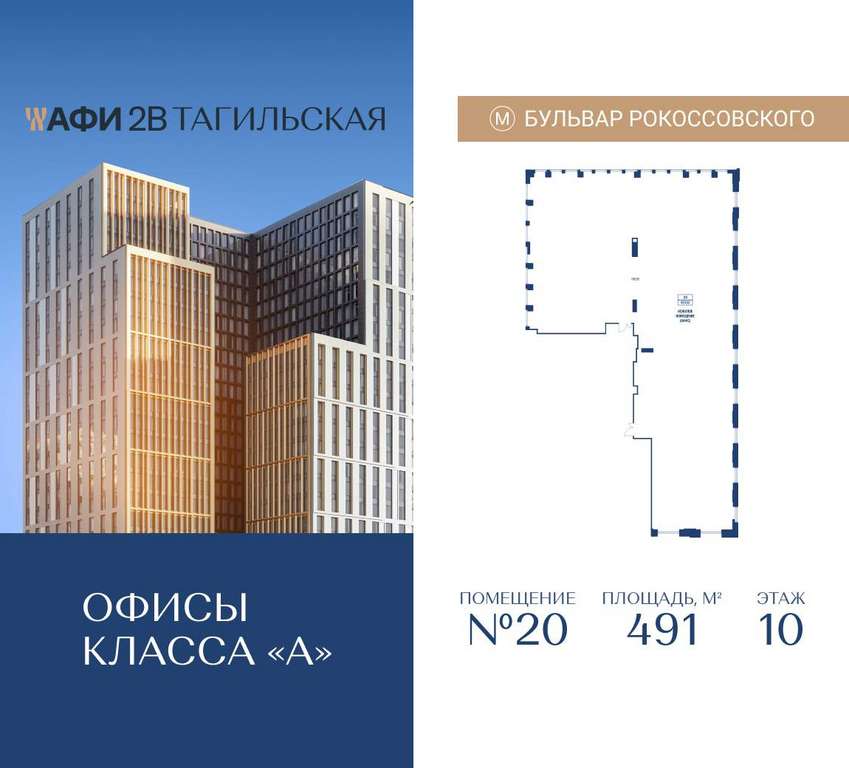 Продается коммерческое помещение общей площадью 491 м2 на 10 этаже в строящемся бизнес-центре АФИ2В Тагильская.