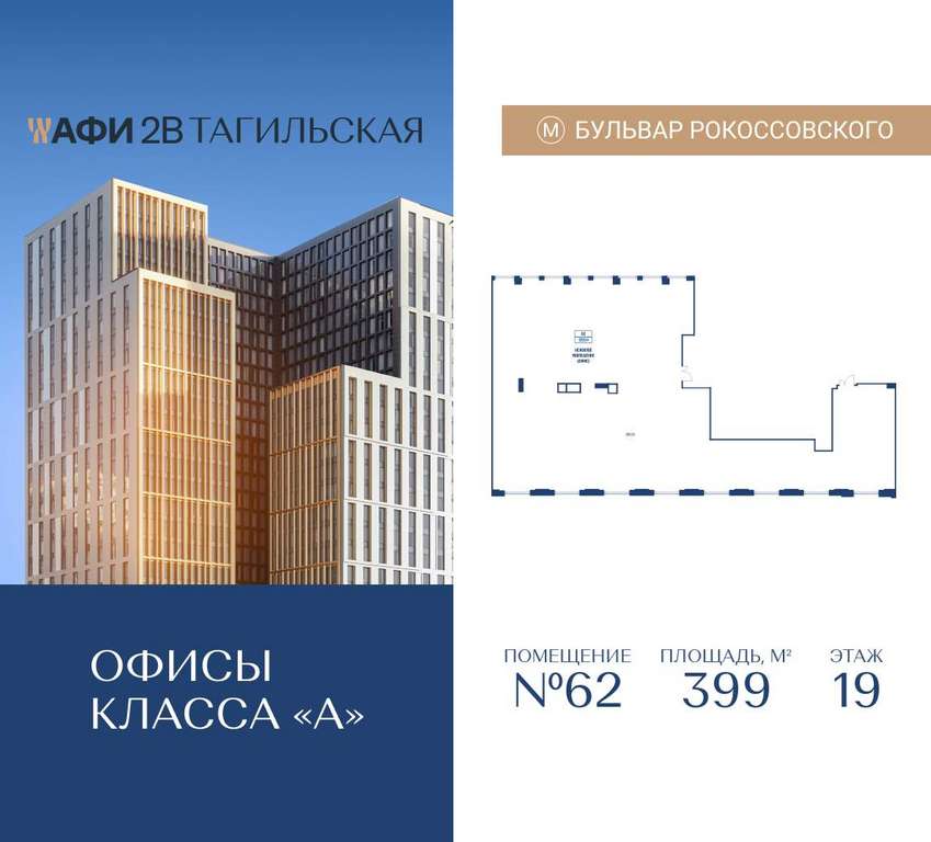26-этажный бизнес-центр АФИ2В Тагильская от девелопера с мировым именем AFI Development - это инновационный комплекс, задающий новый стандарт деловых пространств на востоке Москвы. Проект объединяет статусные офисы, ресторанный дворик, супермаркет и озеленённую террасу, создавая полноценную экосистему для бизнеса.