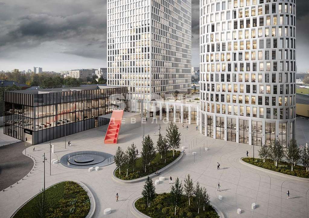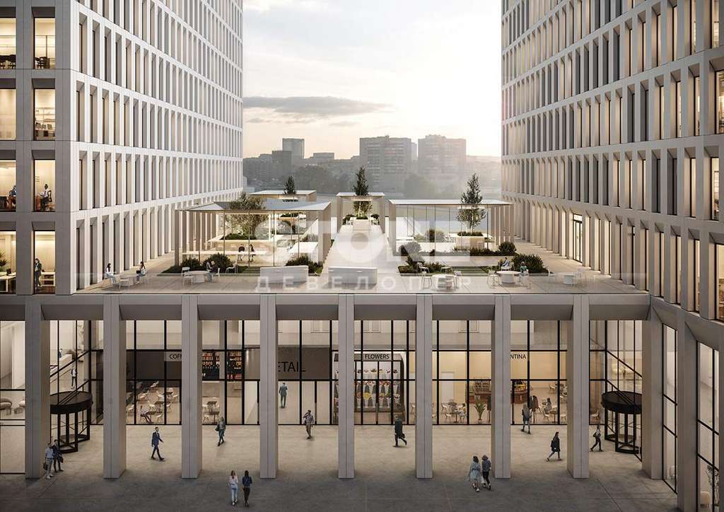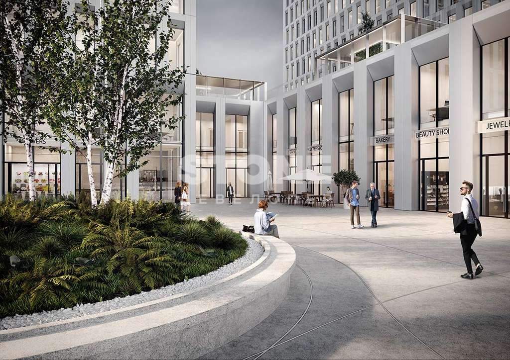 В двухуровневом стилобате разместится вся необходимая инфраструктура: торговые помещения, кафе, рестораны, столовая для сотрудников, аптеки, банкоматы, фитнес-центр.