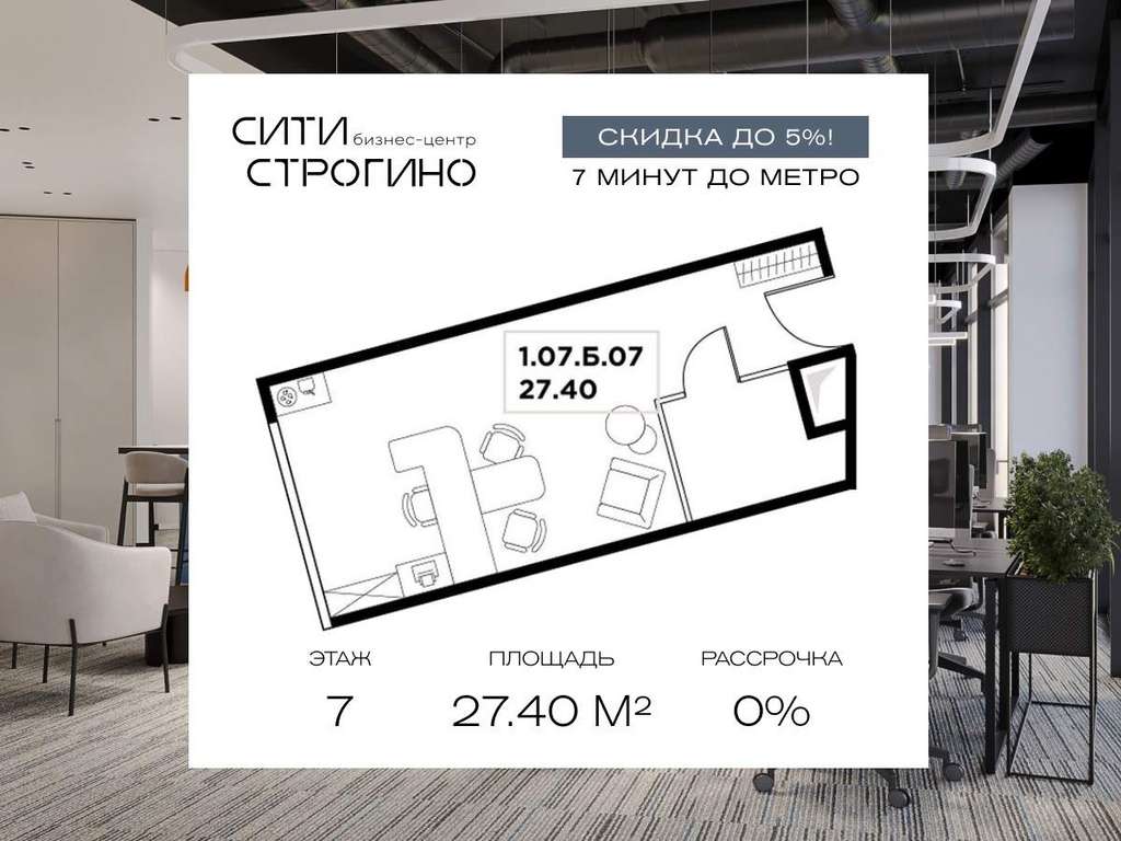В продаже от застройщика комфортабельный Home-офис площадью 27.4 м на 7 этаже в премиальном бизнес-центре Сити Строгино. Срок сдачи - 2028 год.