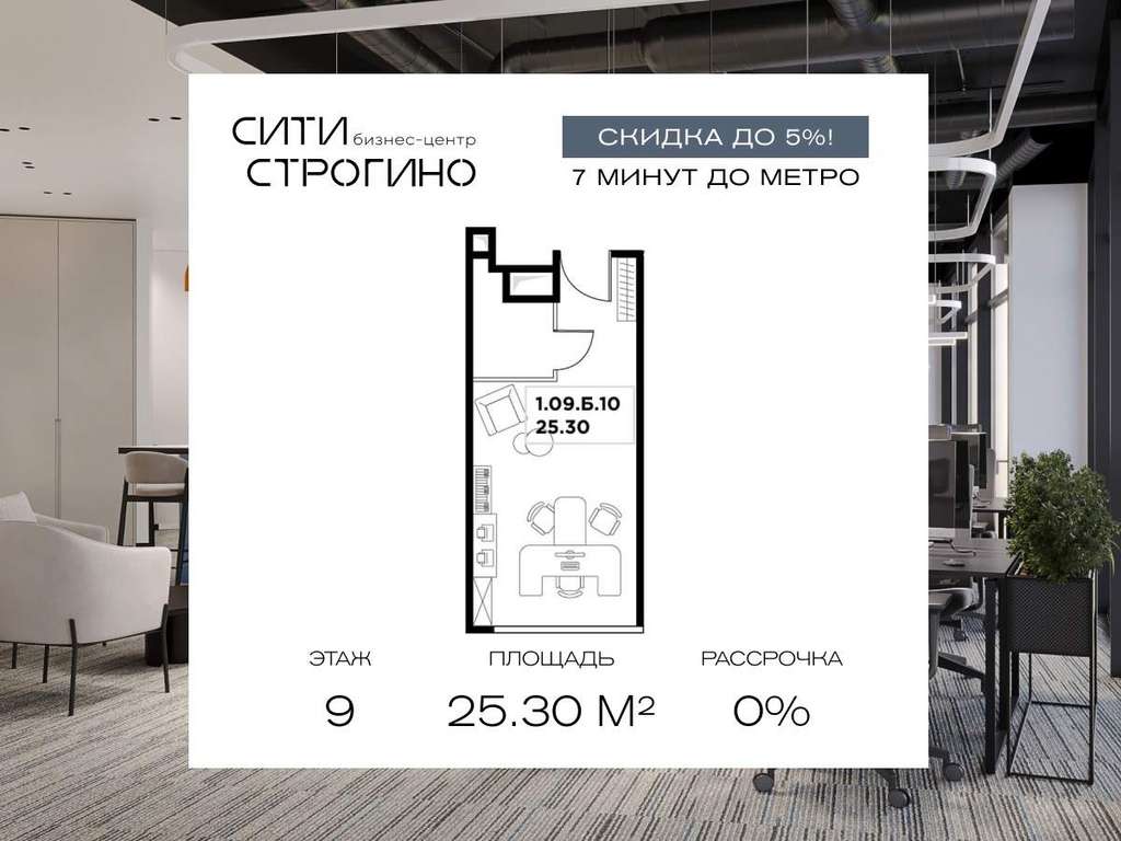 В продаже от застройщика комфортабельный Private-офис площадью 25.3 м на 9 этаже в премиальном бизнес-центре Сити Строгино. Срок сдачи - 2028 год.