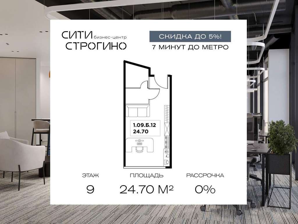 В продаже от застройщика комфортабельный Home-офис площадью 24.7 м на 9 этаже в премиальном бизнес-центре Сити Строгино. Срок сдачи - 2028 год.