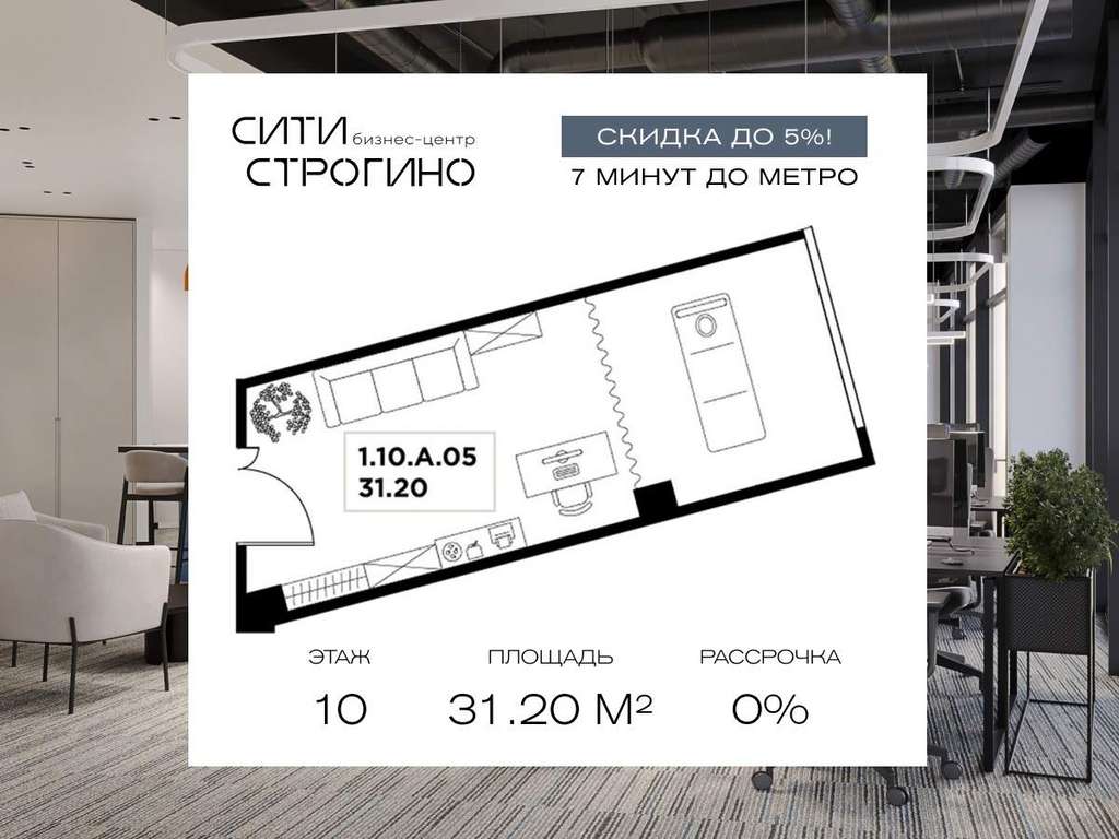 В продаже от застройщика комфортабельный Home-офис площадью 31.2 м на 10 этаже в премиальном бизнес-центре Сити Строгино. Срок сдачи - 2028 год.