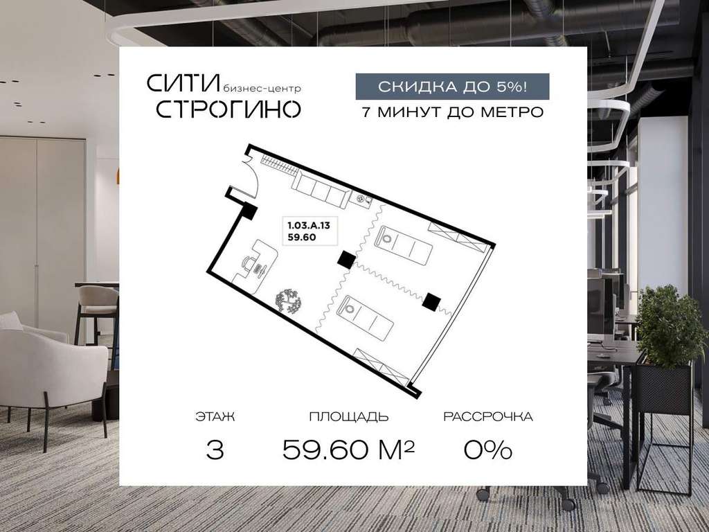 В продаже от застройщика комфортабельный Smart-офис площадью 59.6 м на 3 этаже в премиальном бизнес-центре Сити Строгино. Срок сдачи - 2028 год.