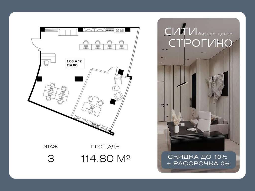 В продаже от застройщика комфортабельный Smart-офис площадью 114.8 м на 3 этаже в премиальном бизнес-центре Сити Строгино. Срок сдачи - 2028 год.