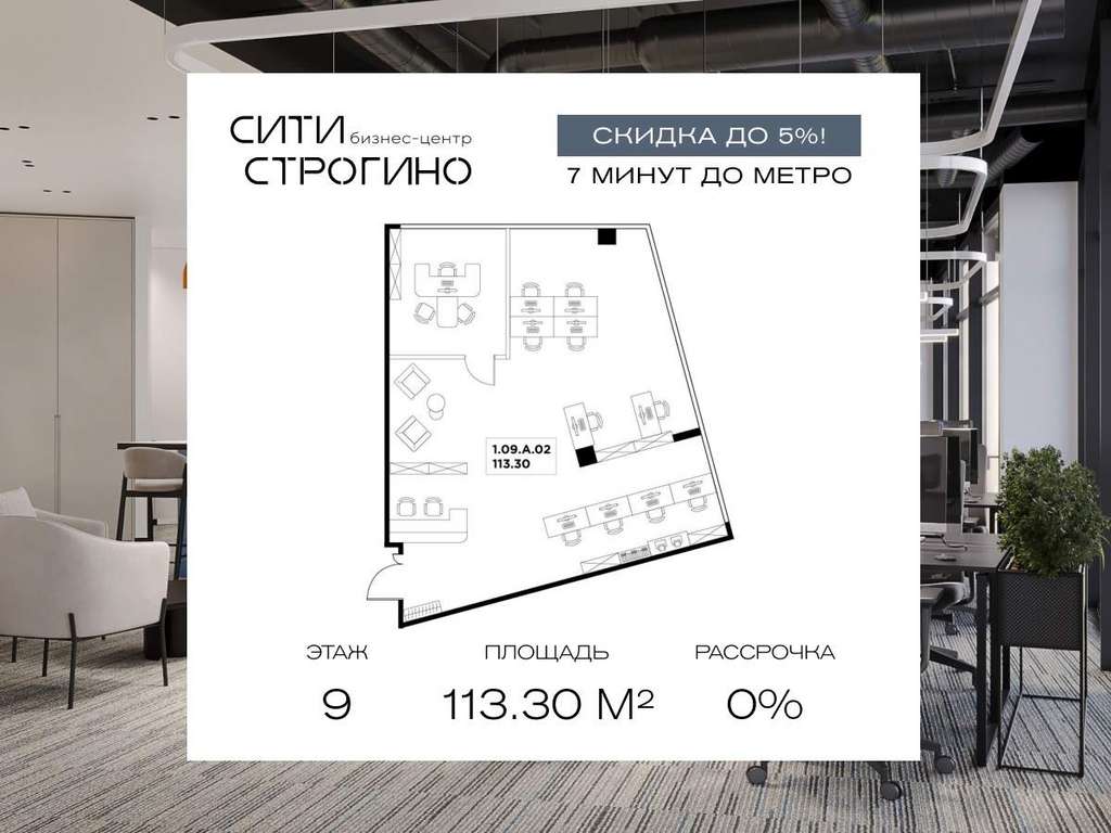 В продаже от застройщика комфортабельный Private-офис площадью 113.3 м на 9 этаже в премиальном бизнес-центре Сити Строгино. Срок сдачи - 2028 год.