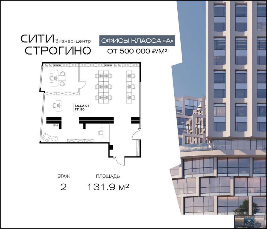 В продаже от застройщика комфортабельный Smart-офис площадью 131.9 м на 2 этаже в премиальном бизнес-центре Сити Строгино. Срок сдачи - 2028 год.