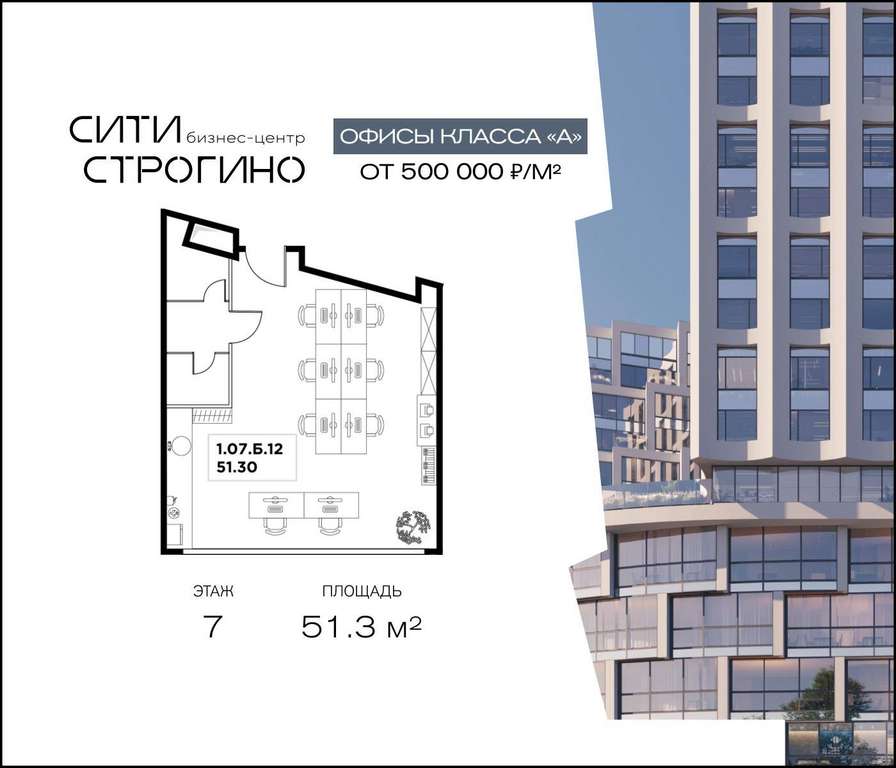 В продаже от застройщика комфортабельный Private-офис площадью 51.3 м на 7 этаже в премиальном бизнес-центре Сити Строгино. Срок сдачи - 2028 год.