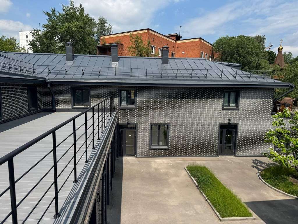 Отделка фасадов выполнена панелями с имитацией клинкерного кирпича. Дополнительно на территории организованы зоны отдыха, имеется возможность для организации летних веранд и кафе.
