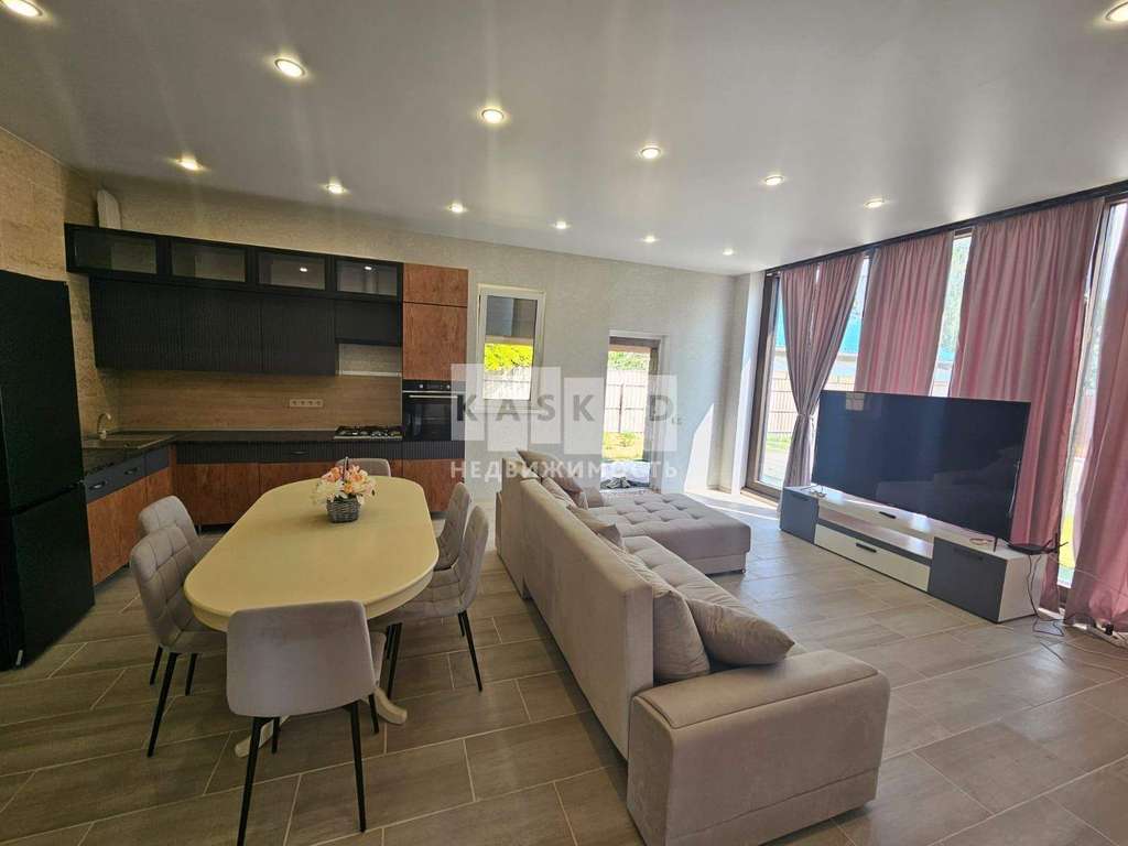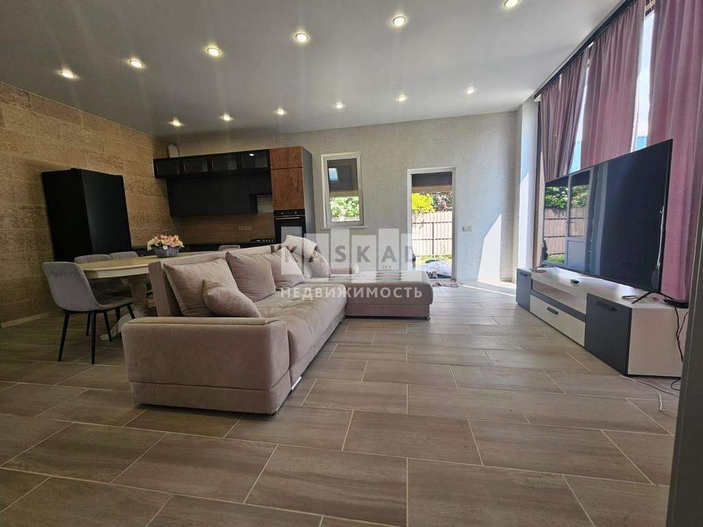 Просторная кухня - гостиная, три спальни, одна из спален со своим санузлом, котельная, санузел. Участок 8 соток, дренаж вокруг дома, правильной формы, огорожен забором.