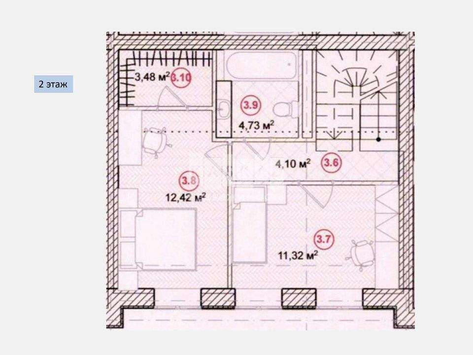 2 этаж: Спальная комната с гардеробной + Спальная комната, санузел с ванной.