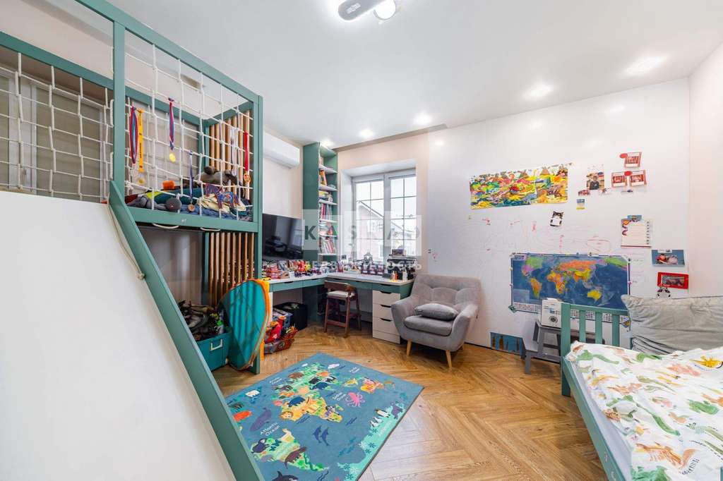 2 этаж: спальная комната 18 метров, кровать кинг - сайз. Гардеробная полностью оборудована функциональной системой хранения, оттененная стеклом с затемнением. Детская комната 16 метров. Санузел 5 метров с ванной. Холл с 4 створчатым вместительным шкафом.