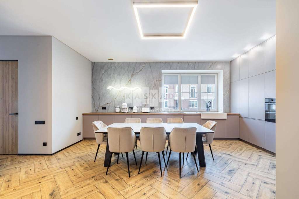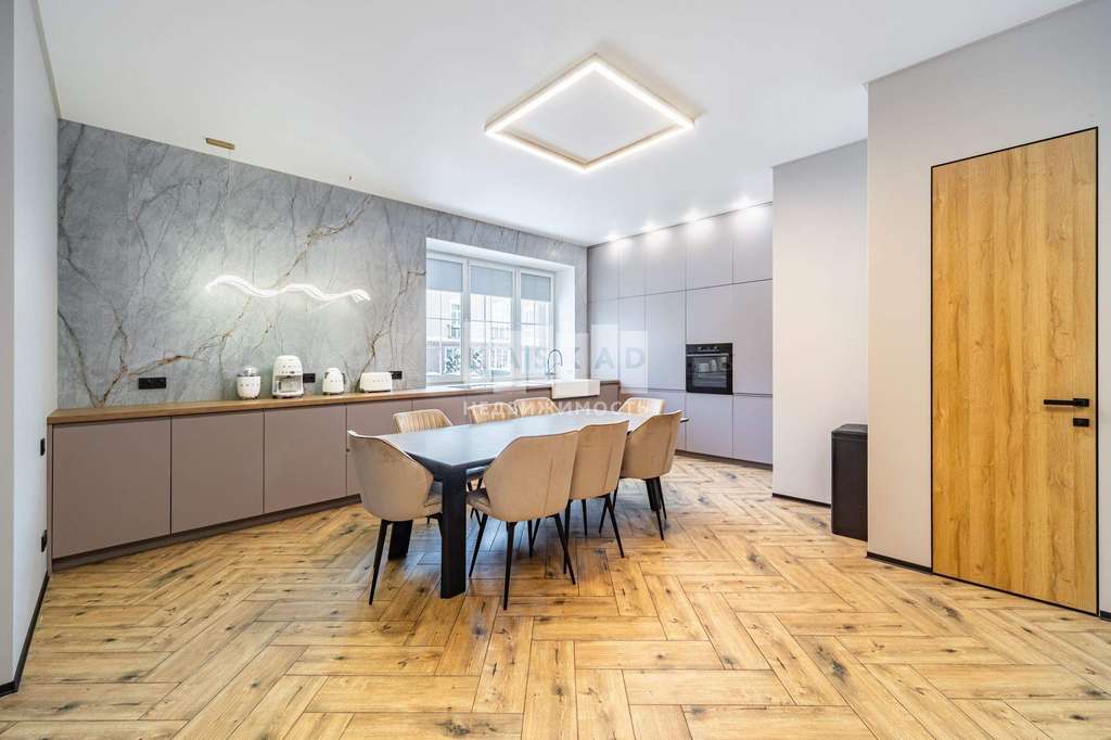 Свежий современный ремонт выполнен в соответствии с новыми трендами. Мебель премиум - класса изготовлена индивидуально под заказ. Встроенная бытовая техника класса люкс. Высокие скрытые интерьерные двери высотой 2,50 метра. Высота потолков 3 метра. Палитры приглушенные, спокойные. Доминируют светлые тона, оттенки серого, бежевого. Все это придаёт дополнительного ощущения солидности и стати.