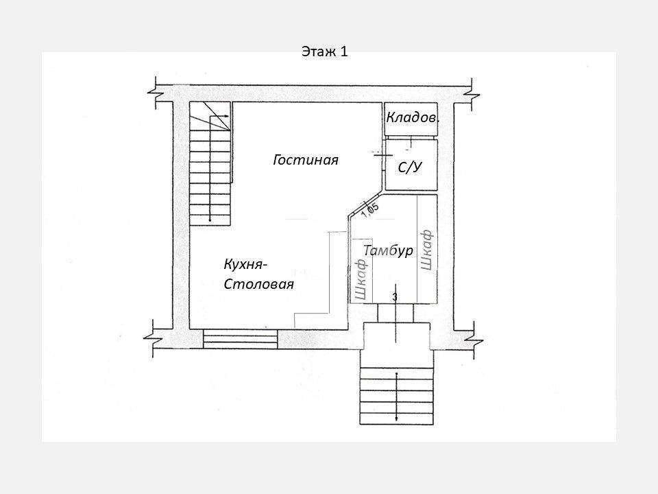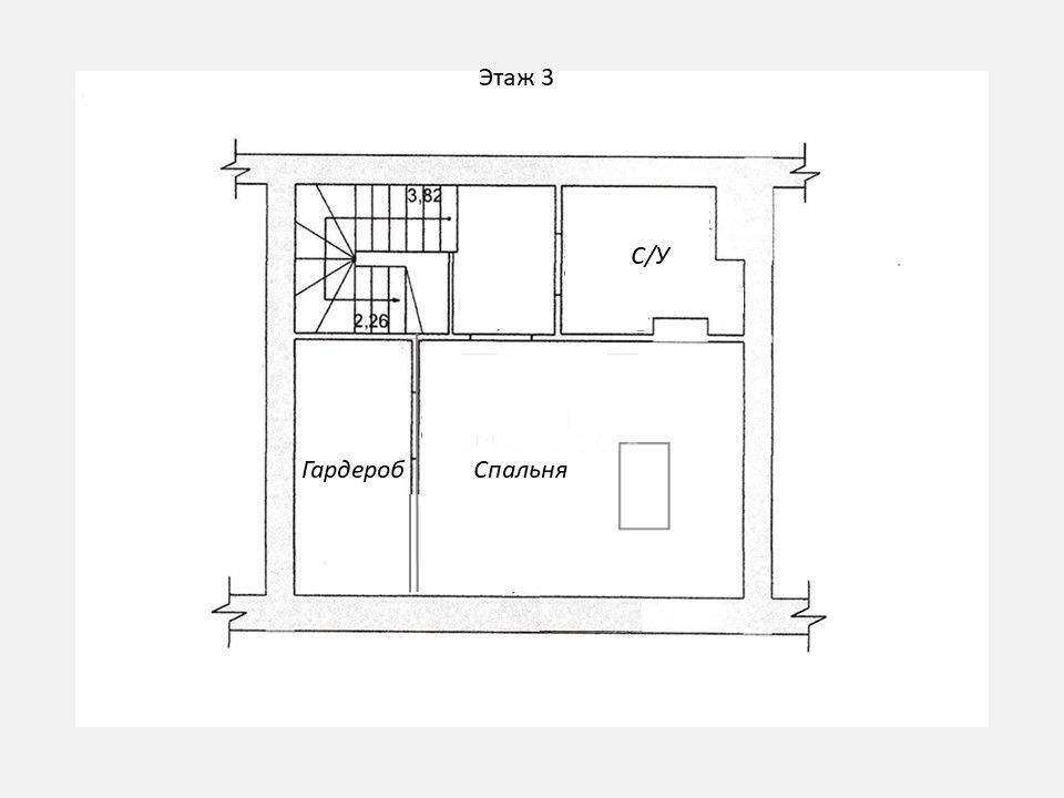 1 этаж: Кухня - гостиная, санузел, кладовая; 2 этаж: Спальня + Спальня, санузел; 3 этаж: Спальня + Комната, санузел; Высокий полноценный жилой третий этаж.