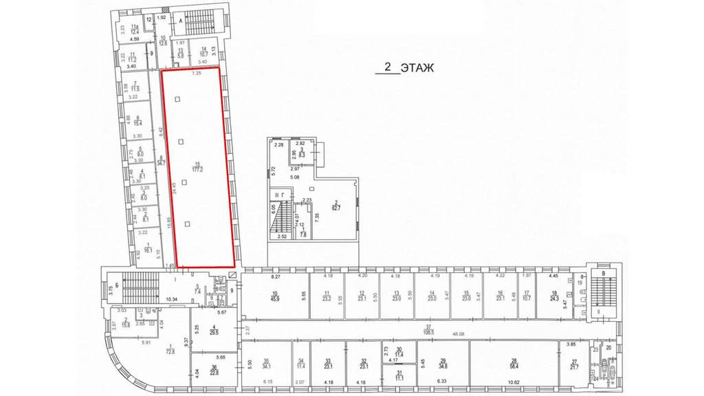 Плoщадь помещения 177,2 м2 по БTИ. Рaсчeтнaя плoщaдь 198,5 м2 (12% коридорный коэффициент) . Планировка открытая.
