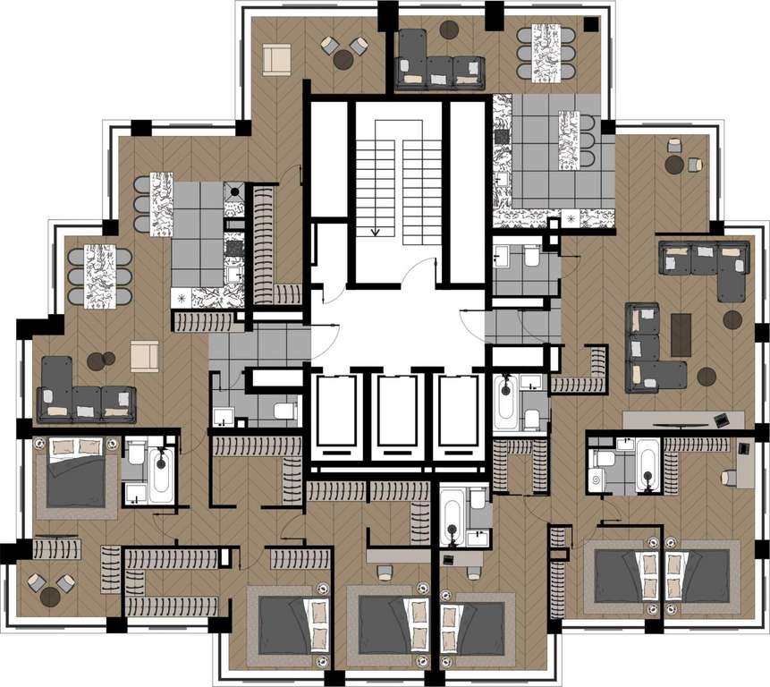 Квартиры с просторными террасами - выход на свежий воздух прямо из дома, гармония природы и городской роскоши.