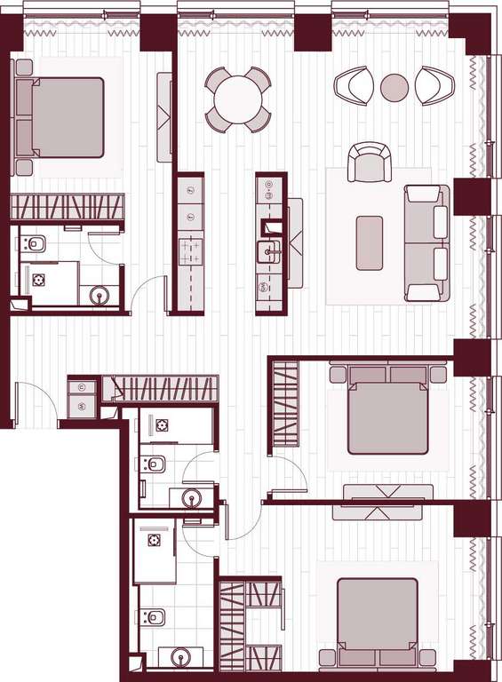 Жилая площадь 104.08 м2, предчистовая отделка, комнаты изолированные, окна выходят во двор.