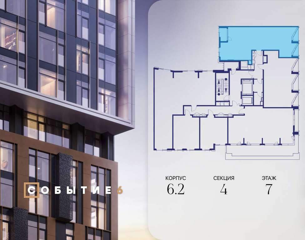 Продаётся 3-комнатная квартира от застройщика: общая площадь 76.00 м, жилая 37.00 м, кухня 20.60 м, 7-й этаж, жилой квартал «Событие-6», корпус 2 (секция 4) Срок сдачи: 4 квартал 2029 года.