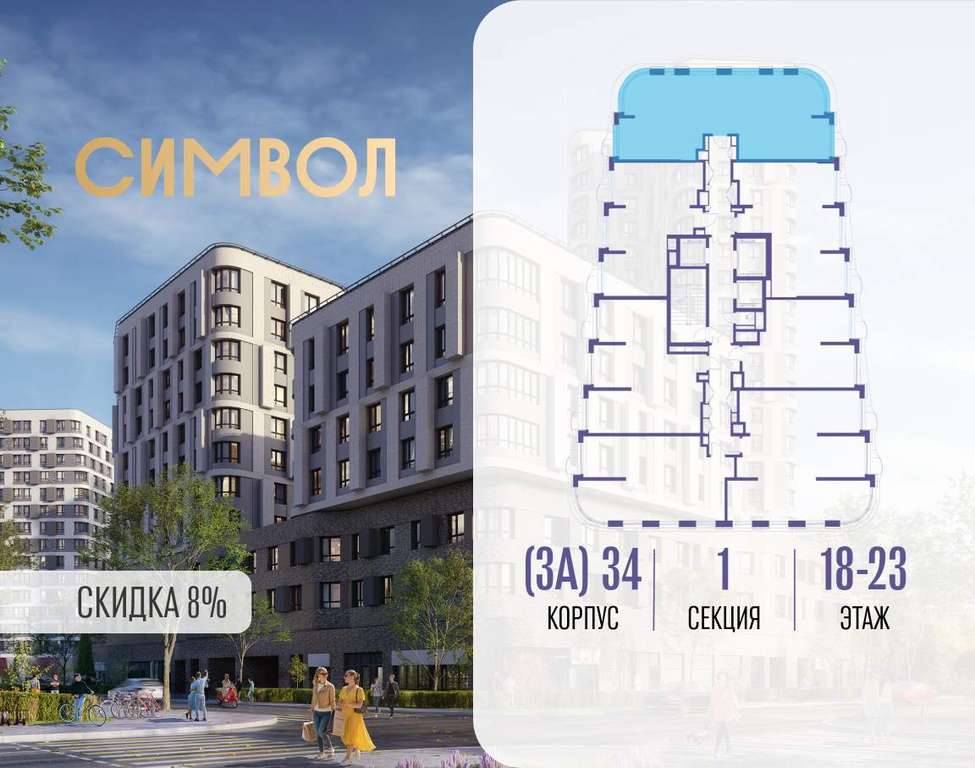 Продается 3-комнатная квартира от застройщика: общая площадь 90.30 м, жилая 37.80 м, кухня 31.60 м, 23-й этаж, жилой квартал «Вдохновение», корпус 34 (секция 1) . Срок сдачи: 4 квартал 2027 года.