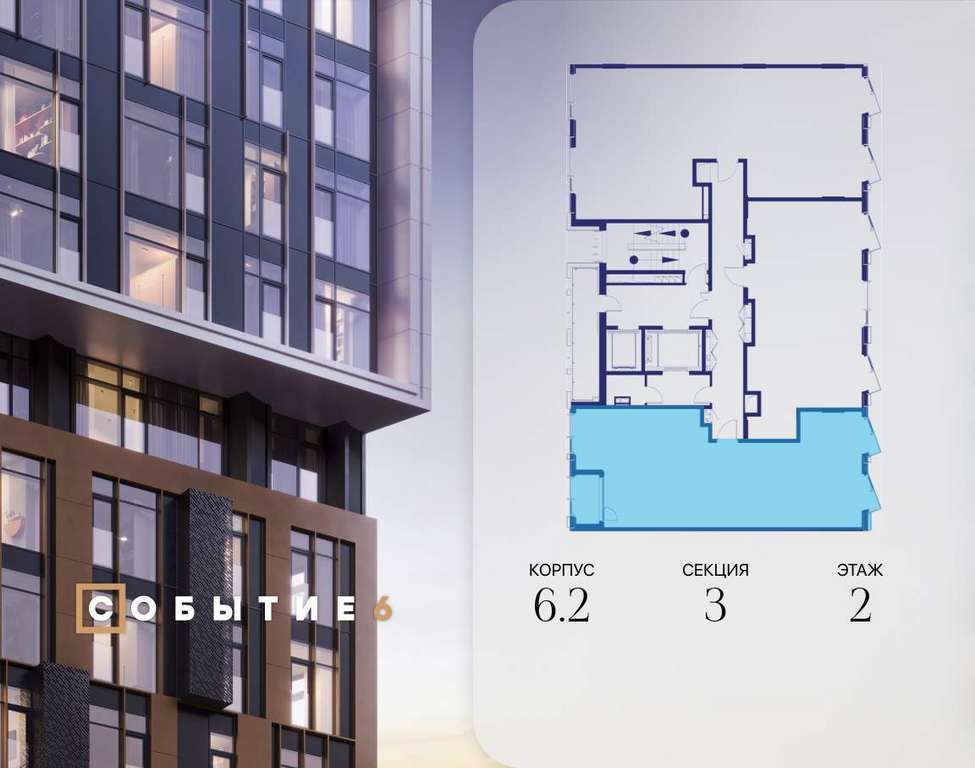 Продаётся 3-комнатная квартира от застройщика: общая площадь 80.40 м, жилая 43.00 м, кухня 20.70 м, 2-й этаж, жилой квартал «Событие-6», корпус 2 (секция 3) Срок сдачи: 4 квартал 2029 года.